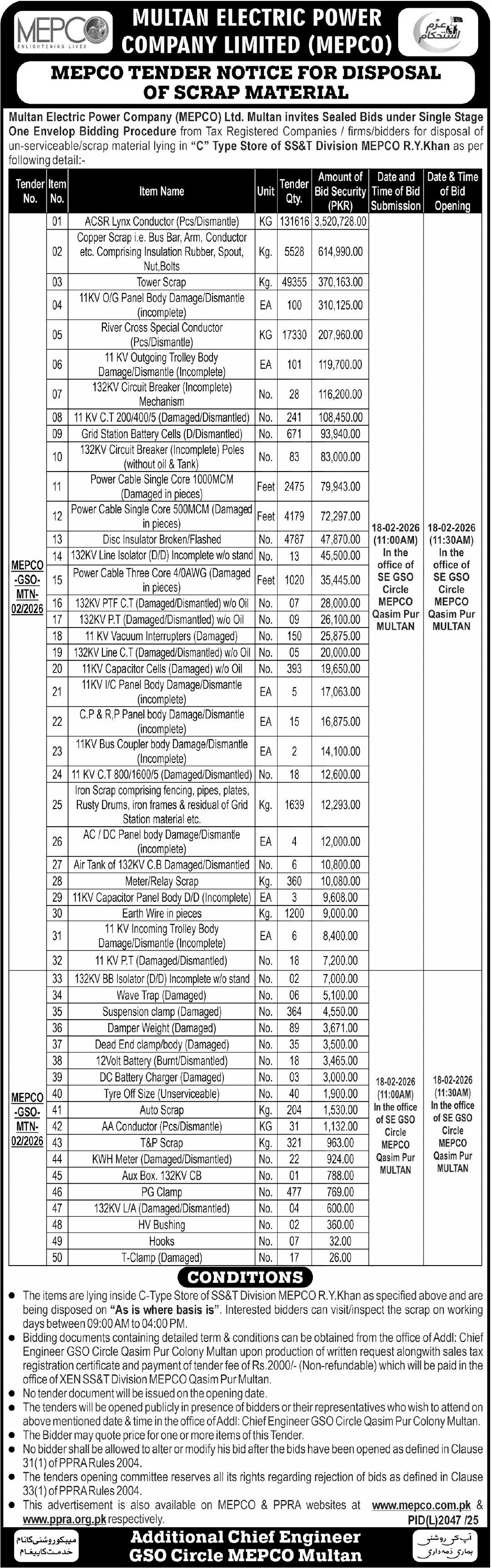 Auction, Baldia, Scrap Material, Toll Tax, WAPDA