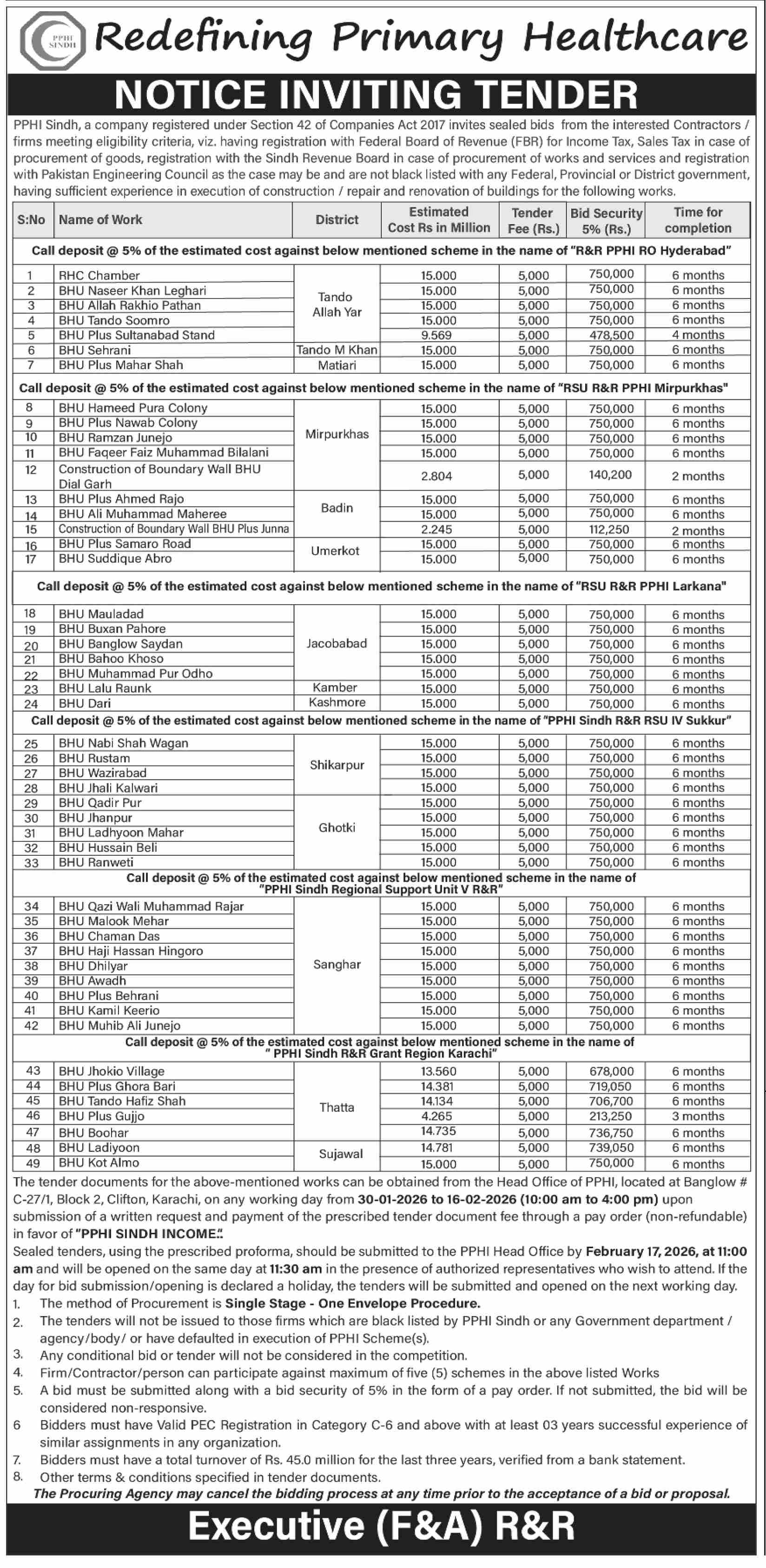 Buildings, Construction, Engineering, Repair & Maintenance, Roads, Water Supply Scheme / Drains / Sewerage
