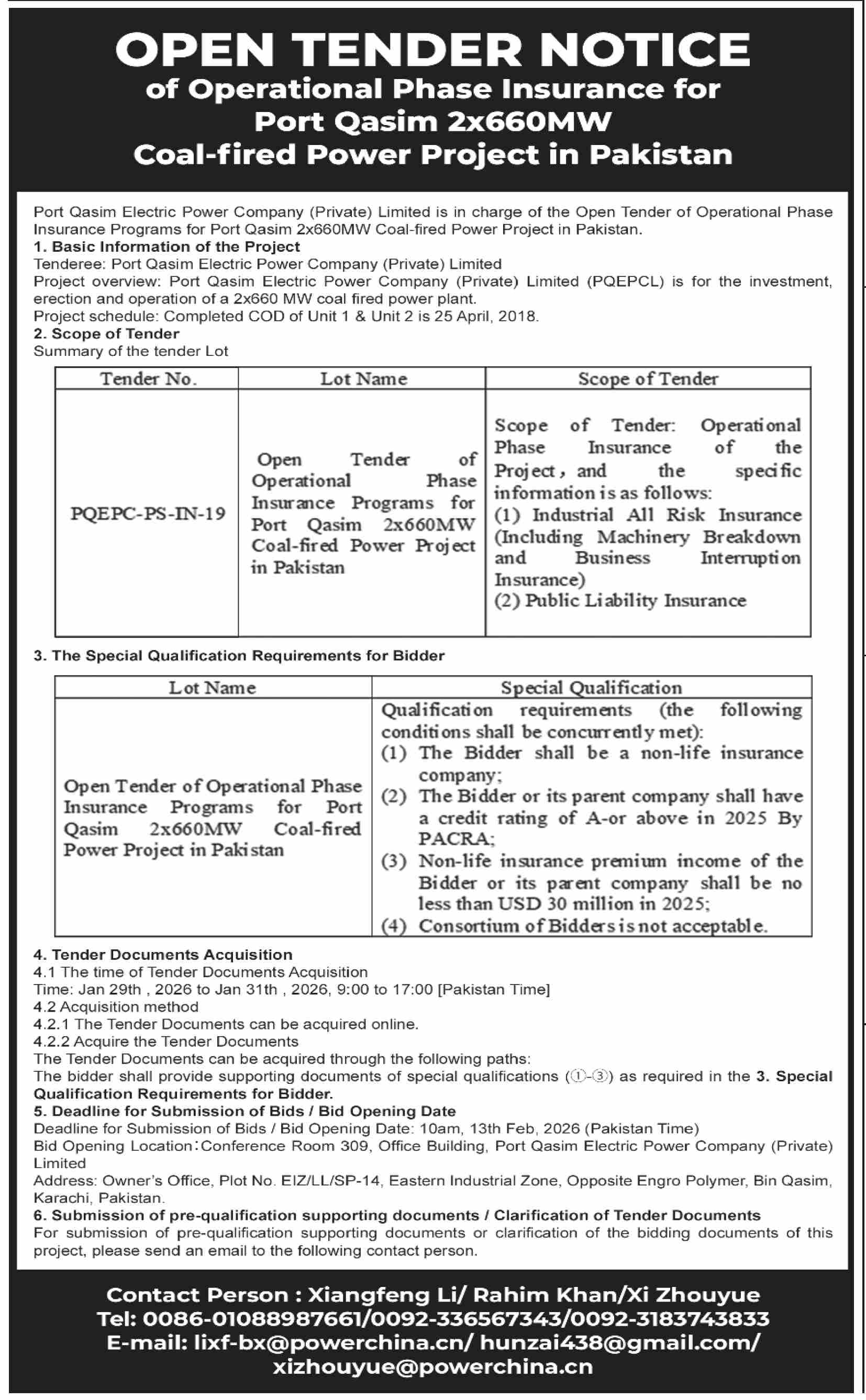 Tender Description