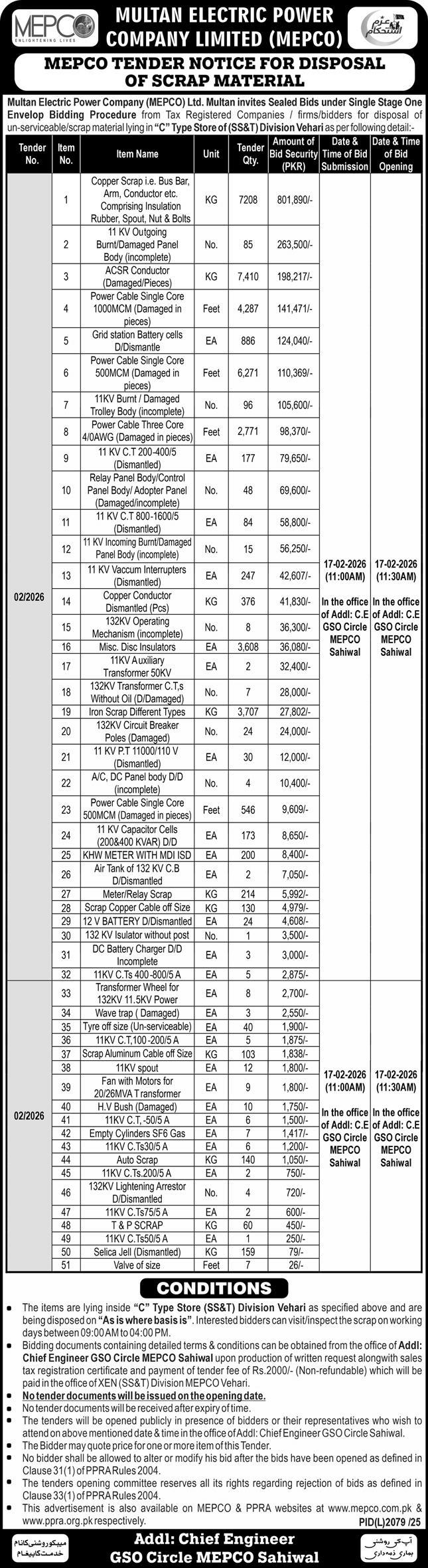 Auction, Baldia, Scrap Material, Toll Tax, WAPDA