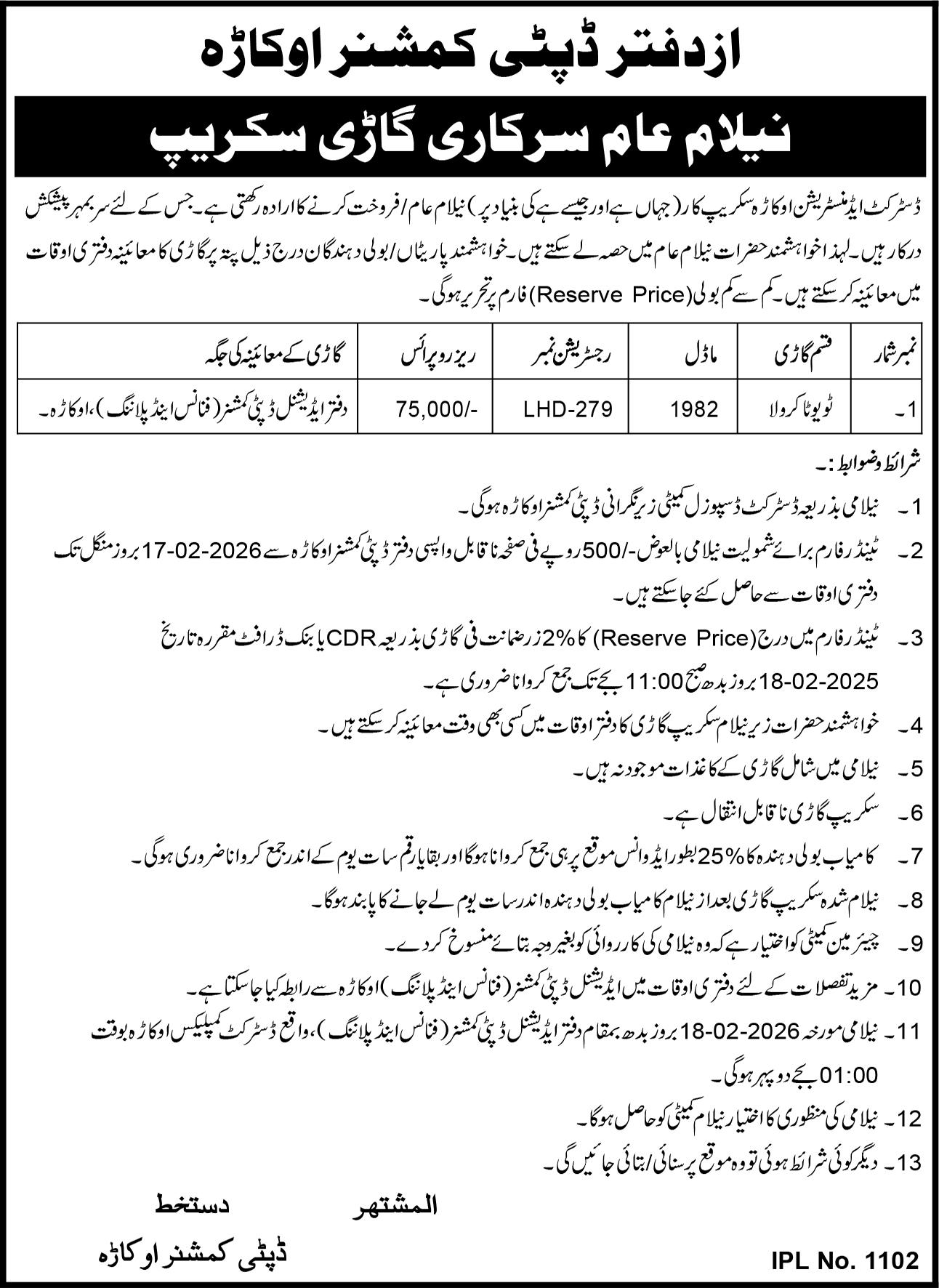 Auction, Baldia, Scrap Material, Toll Tax