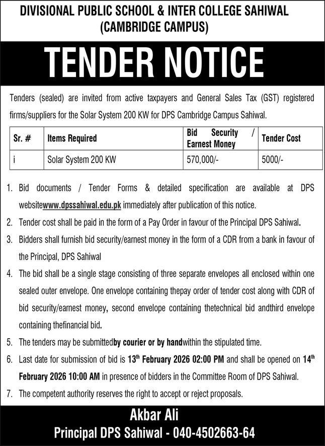Tender Description