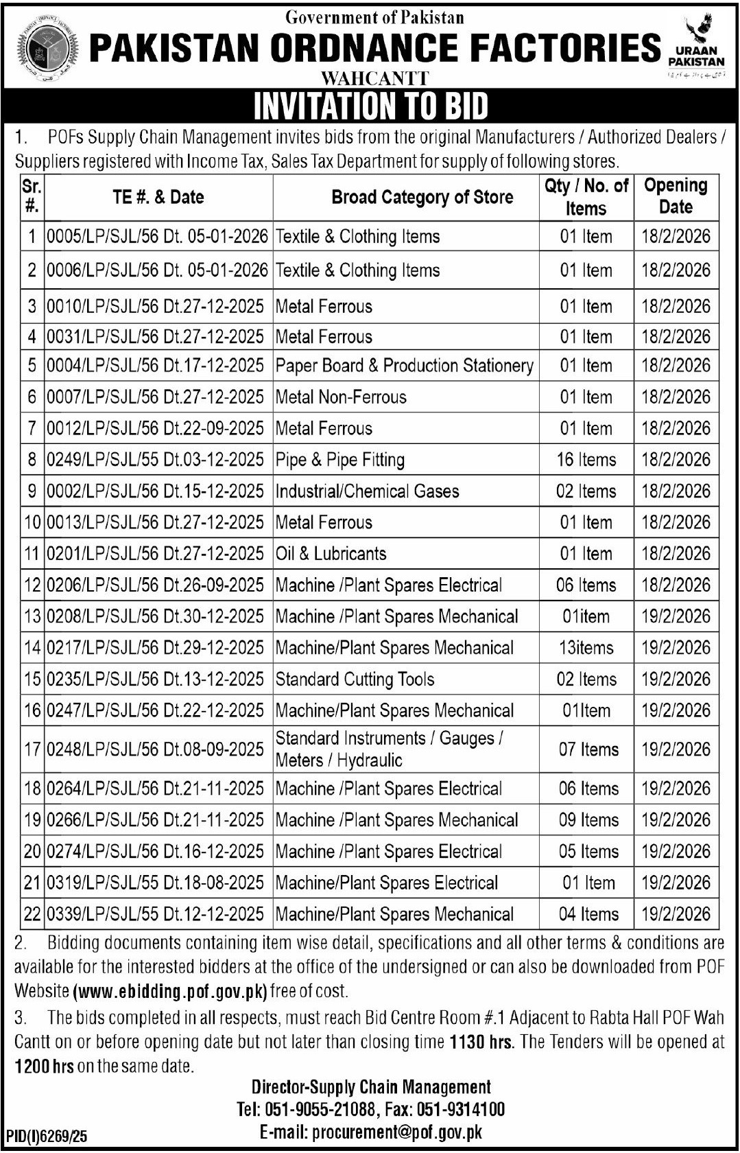 Electrical, Electronics, General Order Supply, Machinery, Mechanical, Pipes, Steel, Textile/Uniform/Shoes