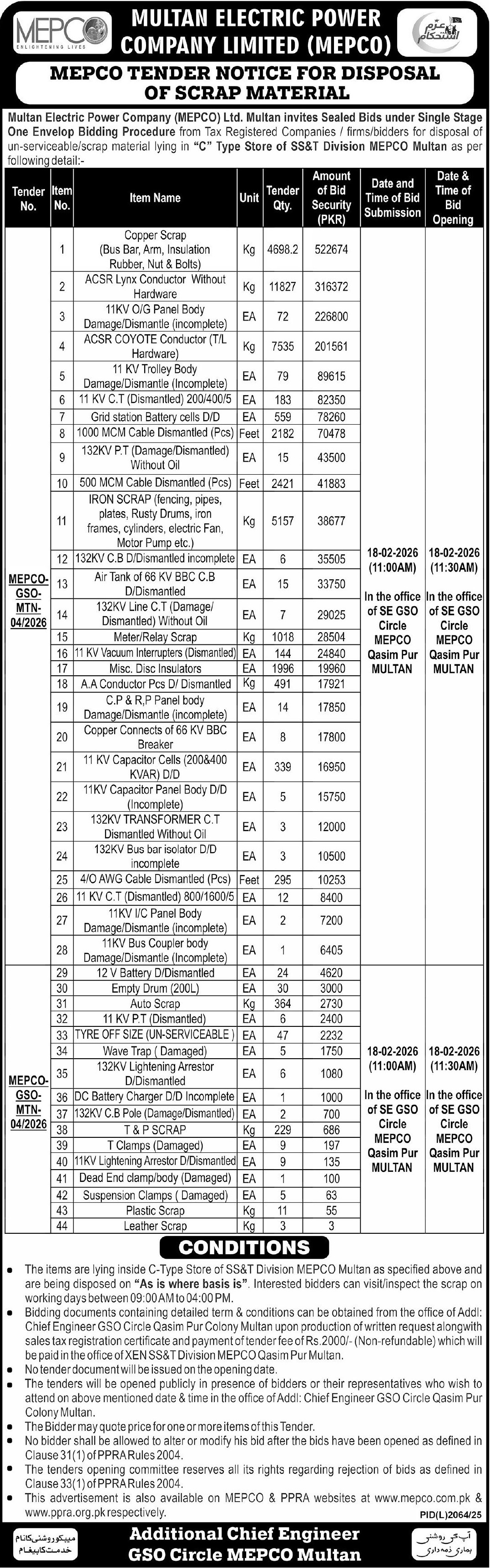 Auction, Baldia, Scrap Material, Toll Tax, WAPDA
