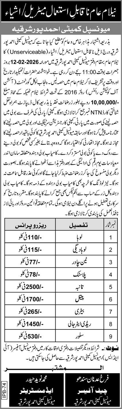 Auction, Baldia, Scrap Material, Toll Tax