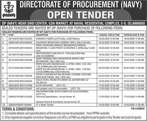 Auction, Baldia, Buildings, Construction, Electrical, Electronics, Engineering, General Order Supply, Machinery, Mechanical, Repair & Maintenance, Roads, Toll Tax