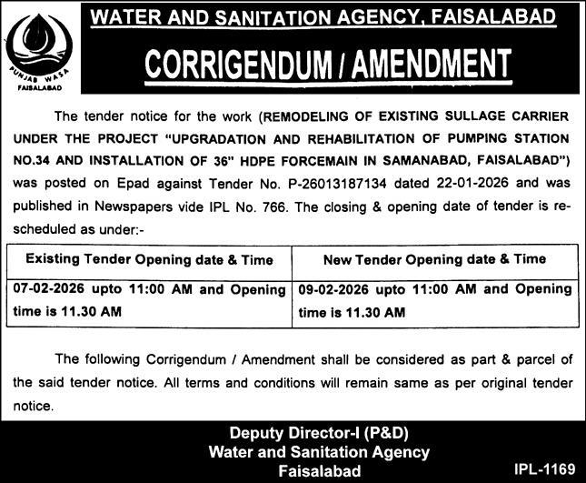 Buildings, Construction, Corrigendum/Addendum , Engineering, Pumps, Repair & Maintenance, Roads, Water Supply Scheme / Drains / Sewerage