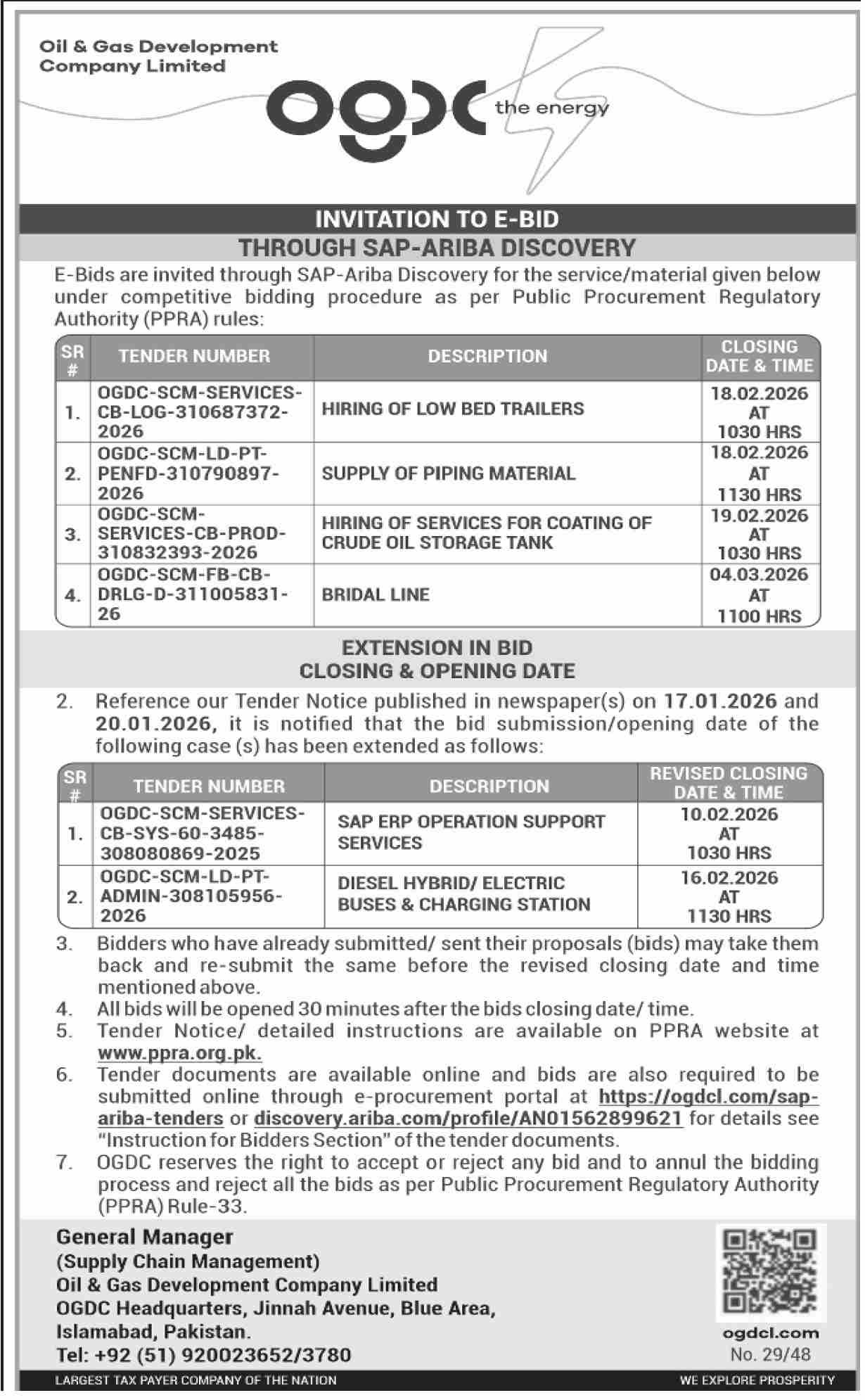 General Order Supply, Machinery, Mechanical, OGDCL, OGDCL, Pipes