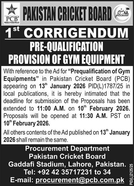 Corrigendum/Addendum , General Order Supply, Machinery, Mechanical, Pre Qualification, Sports Items