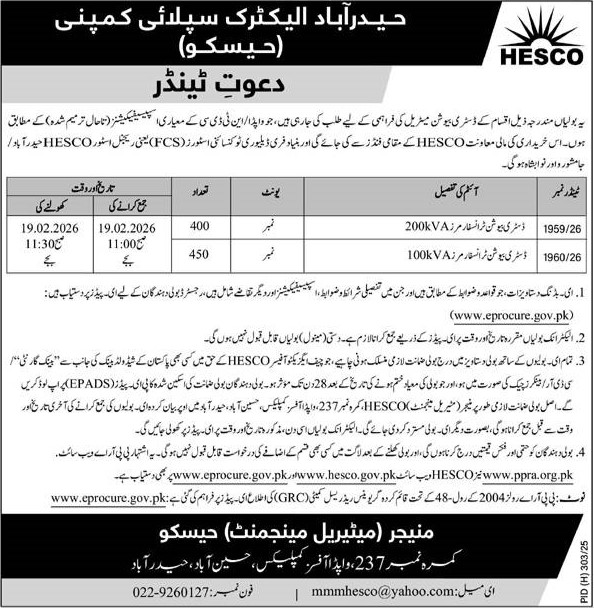 Electrical, Electronics, Energy, General Order Supply, Machinery, Mechanical, WAPDA
