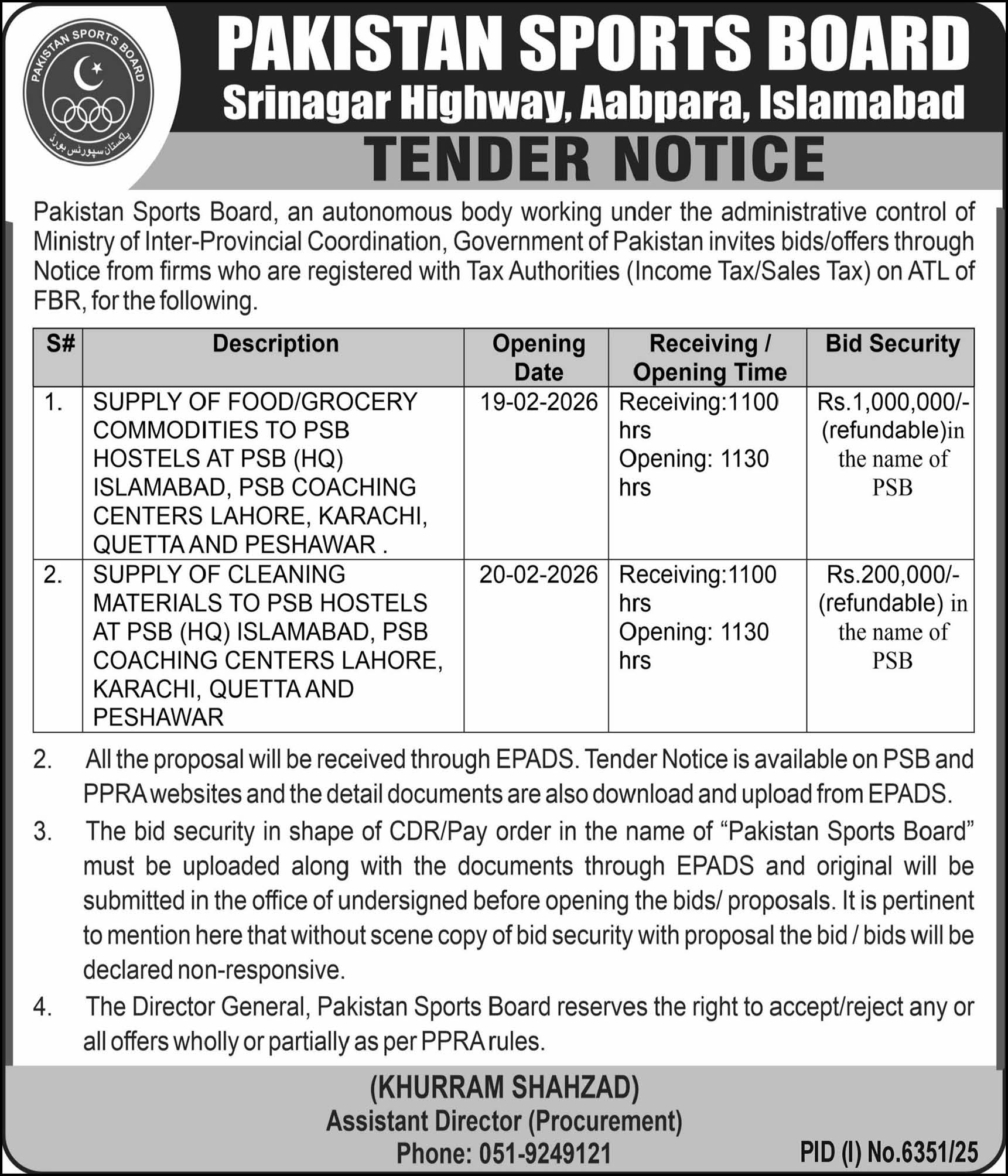 Pakistan Sports Board, Islamabad