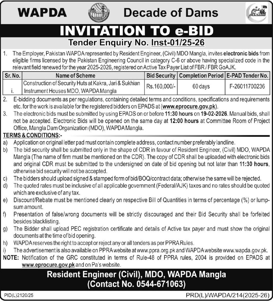 Buildings, Construction, Engineering, Repair & Maintenance, Roads, WAPDA, Water Supply Scheme / Drains / Sewerage