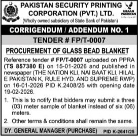 Corrigendum/Addendum , General Order Supply, Textile/Uniform/Shoes