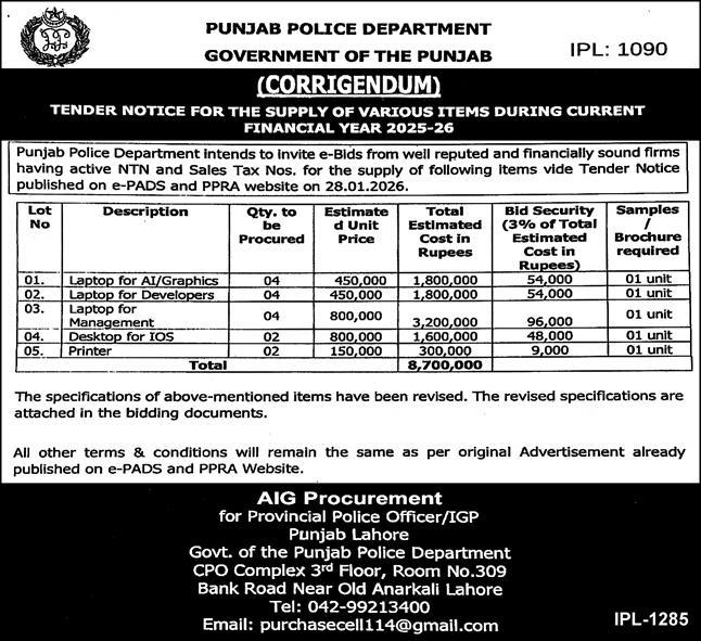 Cables, Computers/Accessories, Corrigendum/Addendum , Electrical, Electronics, General Order Supply, IT, Machinery, Mechanical, Networking, Software, Stationery