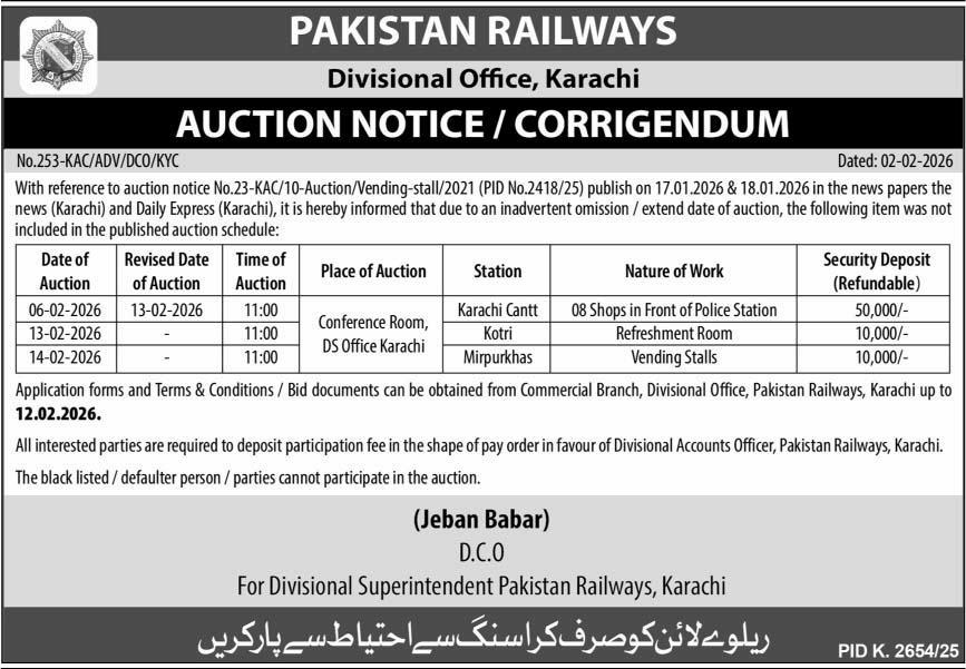 Auction, Baldia, Railway, Scrap Material, Toll Tax