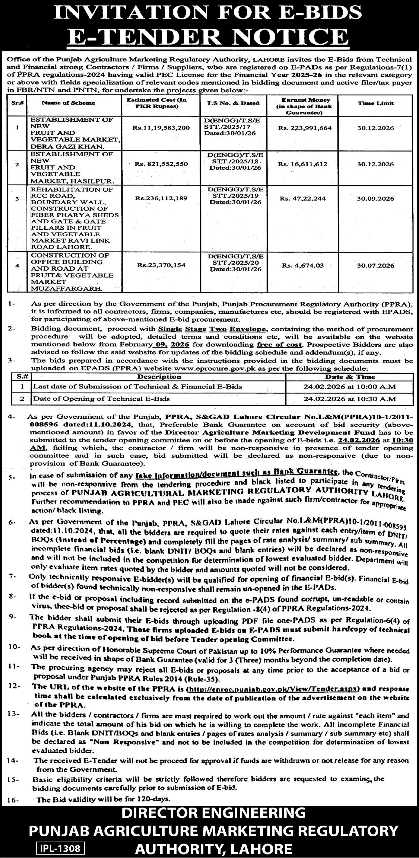 Buildings, Construction, Engineering, Food / Soap etc., General Order Supply, Repair & Maintenance, Roads, Water Supply Scheme / Drains / Sewerage