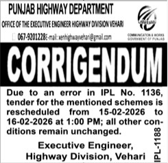 Buildings, Construction, Corrigendum/Addendum , Engineering, Repair & Maintenance, Roads, Water Supply Scheme / Drains / Sewerage