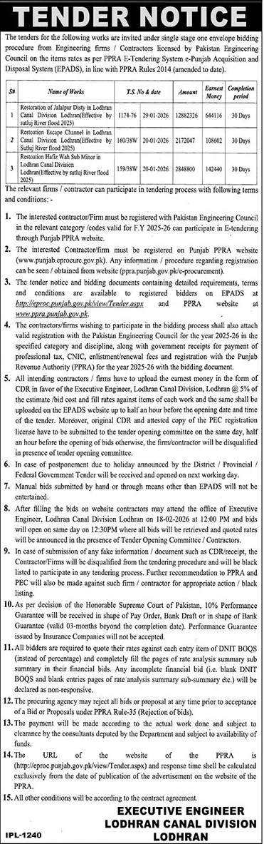 Buildings, Construction, Engineering, Repair & Maintenance, Roads, Water Supply Scheme / Drains / Sewerage