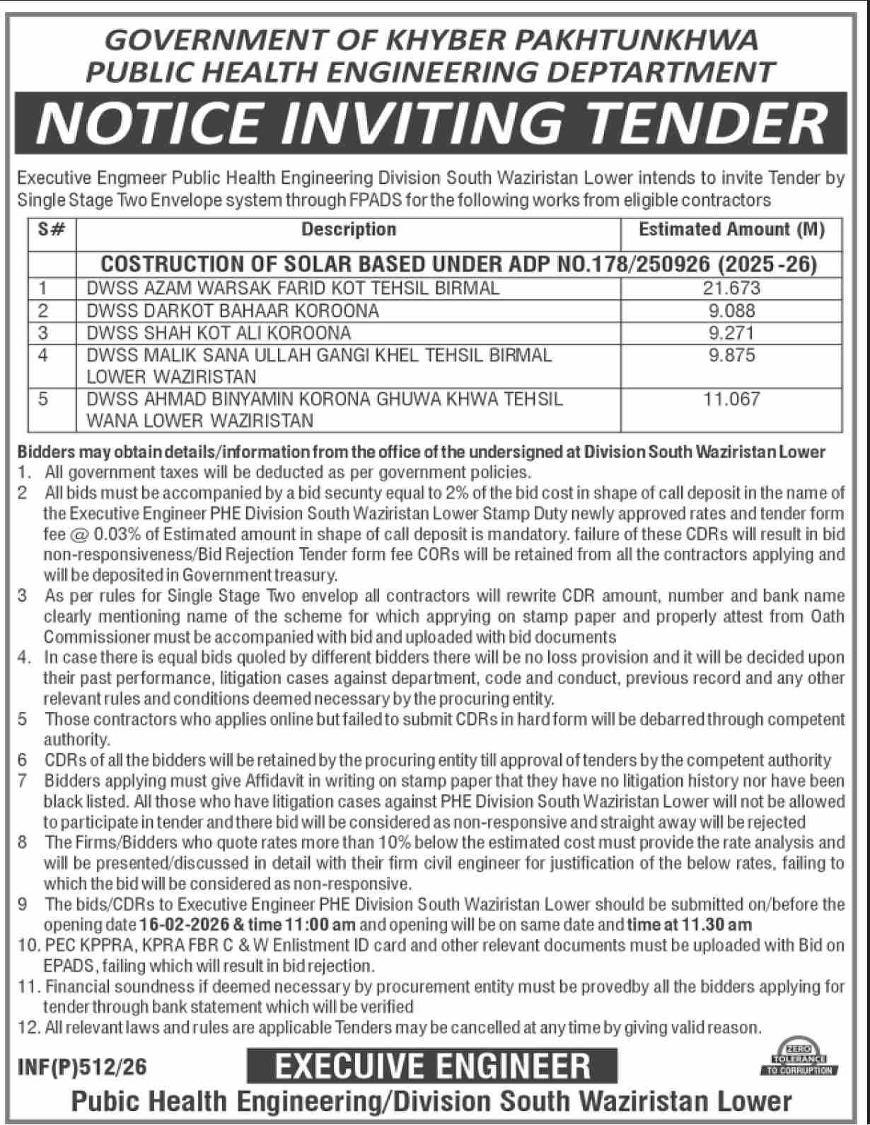 Buildings, Construction, Energy, Engineering, Pumps, Repair & Maintenance, Roads, Tubewells, Water Supply Scheme / Drains / Sewerage