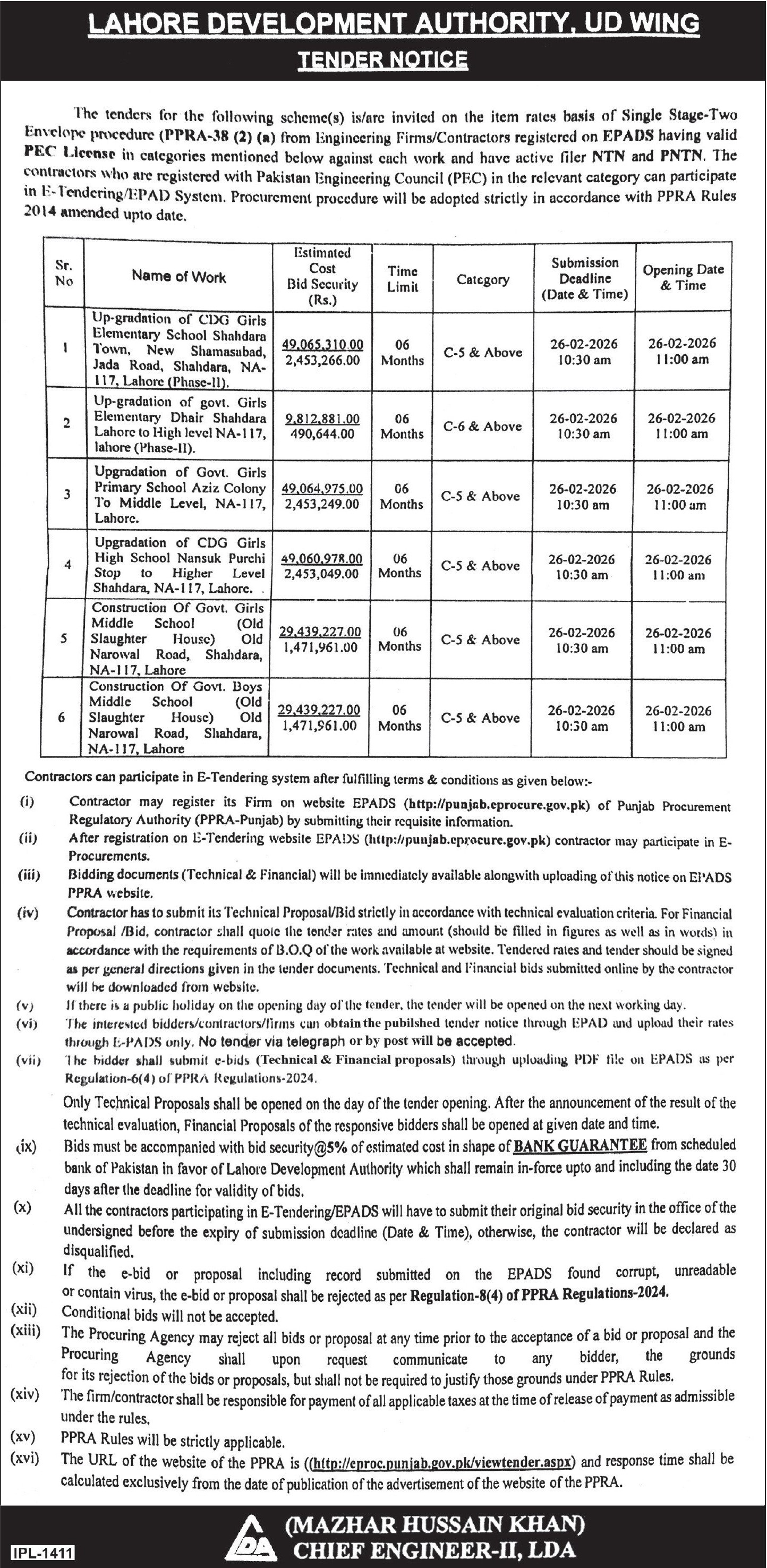 Buildings, Construction, Development Authority, Engineering, LDA, Repair & Maintenance, Roads, Water Supply Scheme / Drains / Sewerage
