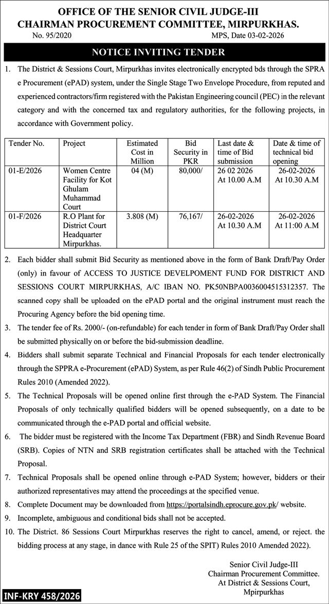 Buildings, Construction, Electrical, Electronics, Engineering, General Order Supply, Machinery, Mechanical, Repair & Maintenance, Roads, Water Supply Scheme / Drains / Sewerage