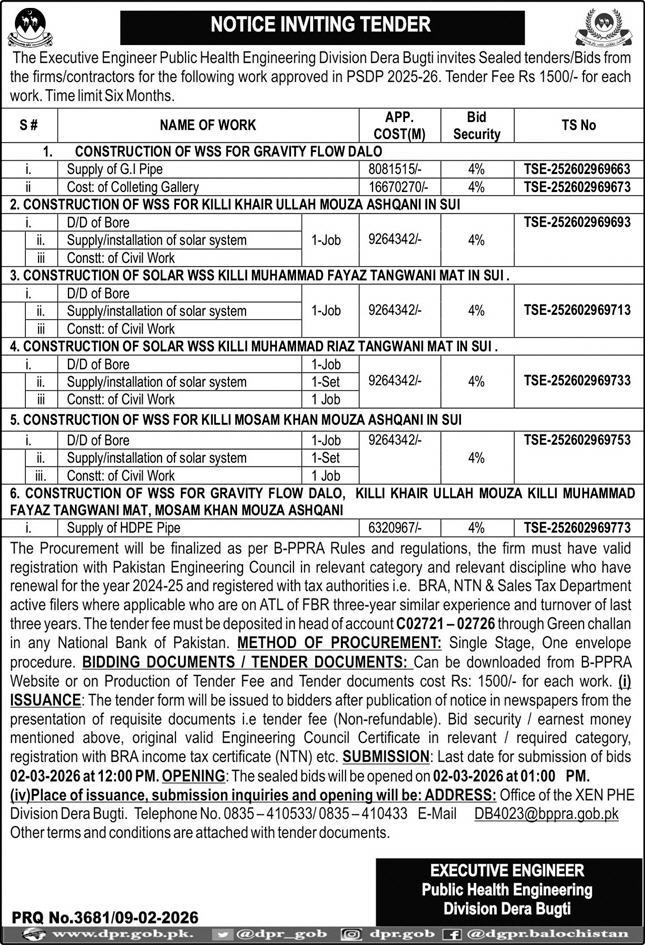 Buildings, Construction, Energy, Engineering, Pipes, Pumps, Repair & Maintenance, Roads, Tubewells, Water Supply Scheme / Drains / Sewerage