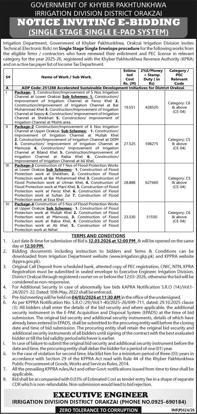 Buildings, Construction, Engineering, Irrigation, Repair & Maintenance, Roads, Water Supply Scheme / Drains / Sewerage