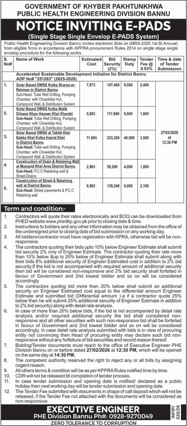 Buildings, Construction, Energy, Engineering, Pumps, Repair & Maintenance, Roads, Tubewells, Water Supply Scheme / Drains / Sewerage