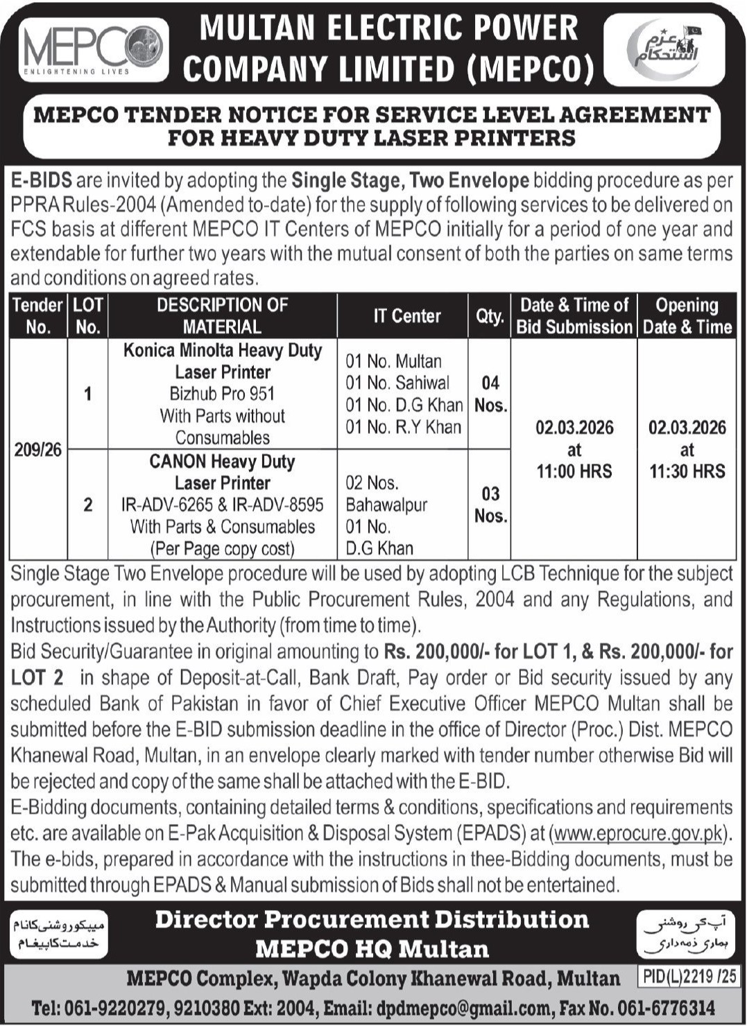 Computers/Accessories, General Order Supply, Stationery, WAPDA