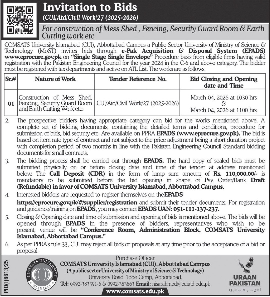 Buildings, Construction, Engineering, Repair & Maintenance, Roads, Water Supply Scheme / Drains / Sewerage