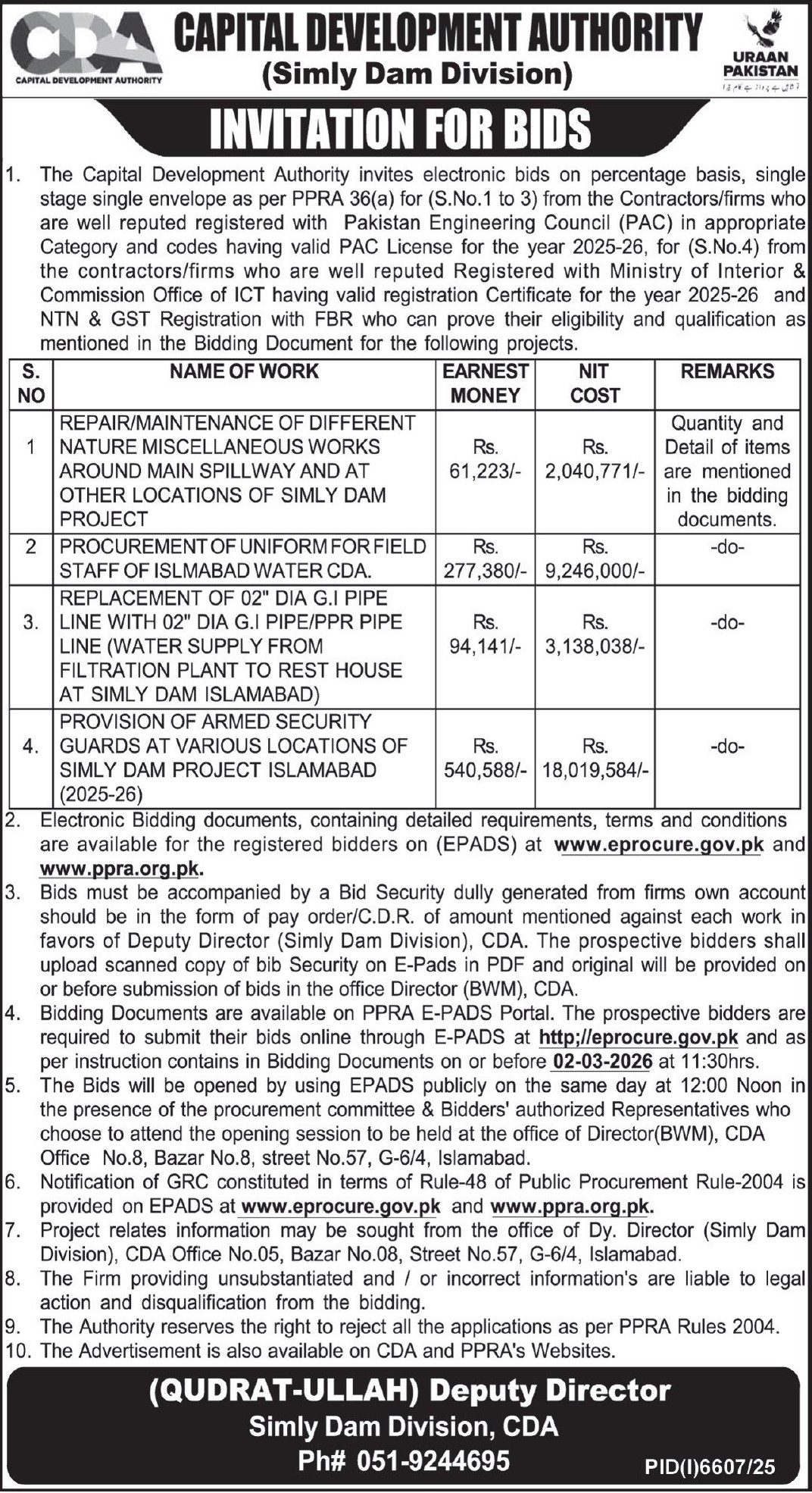 Buildings, Construction, Engineering, Pipes, Repair & Maintenance, Roads, Security, Services Required, Textile/Uniform/Shoes, Water Supply Scheme / Drains / Sewerage