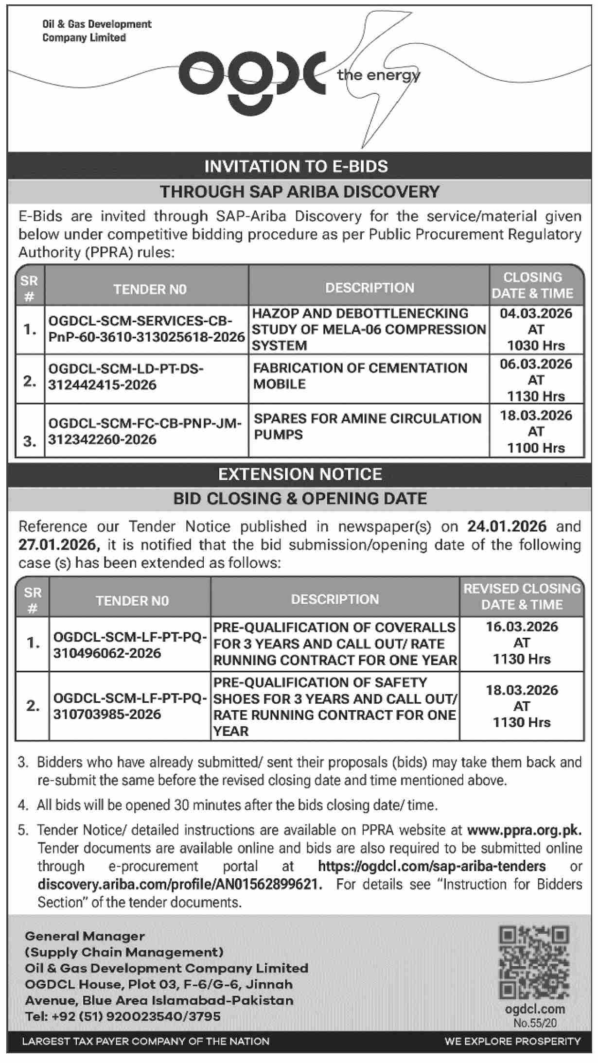 Electrical, Electronics, Fabrication, General Order Supply, Machinery, Material, Mechanical, OGDCL, OGDCL, Pre Qualification, Pumps
