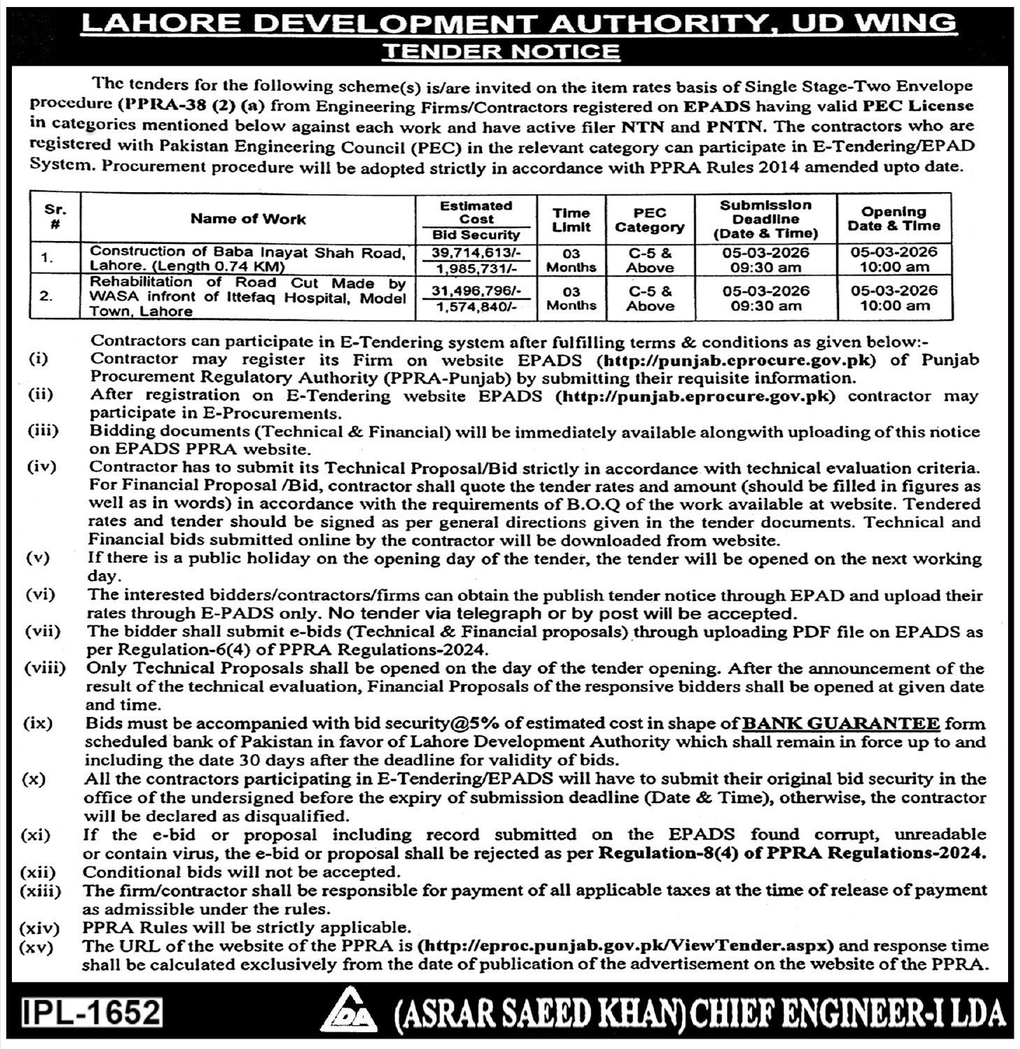 Buildings, Construction, Development Authority, Engineering, LDA, Repair & Maintenance, Roads, Water Supply Scheme / Drains / Sewerage
