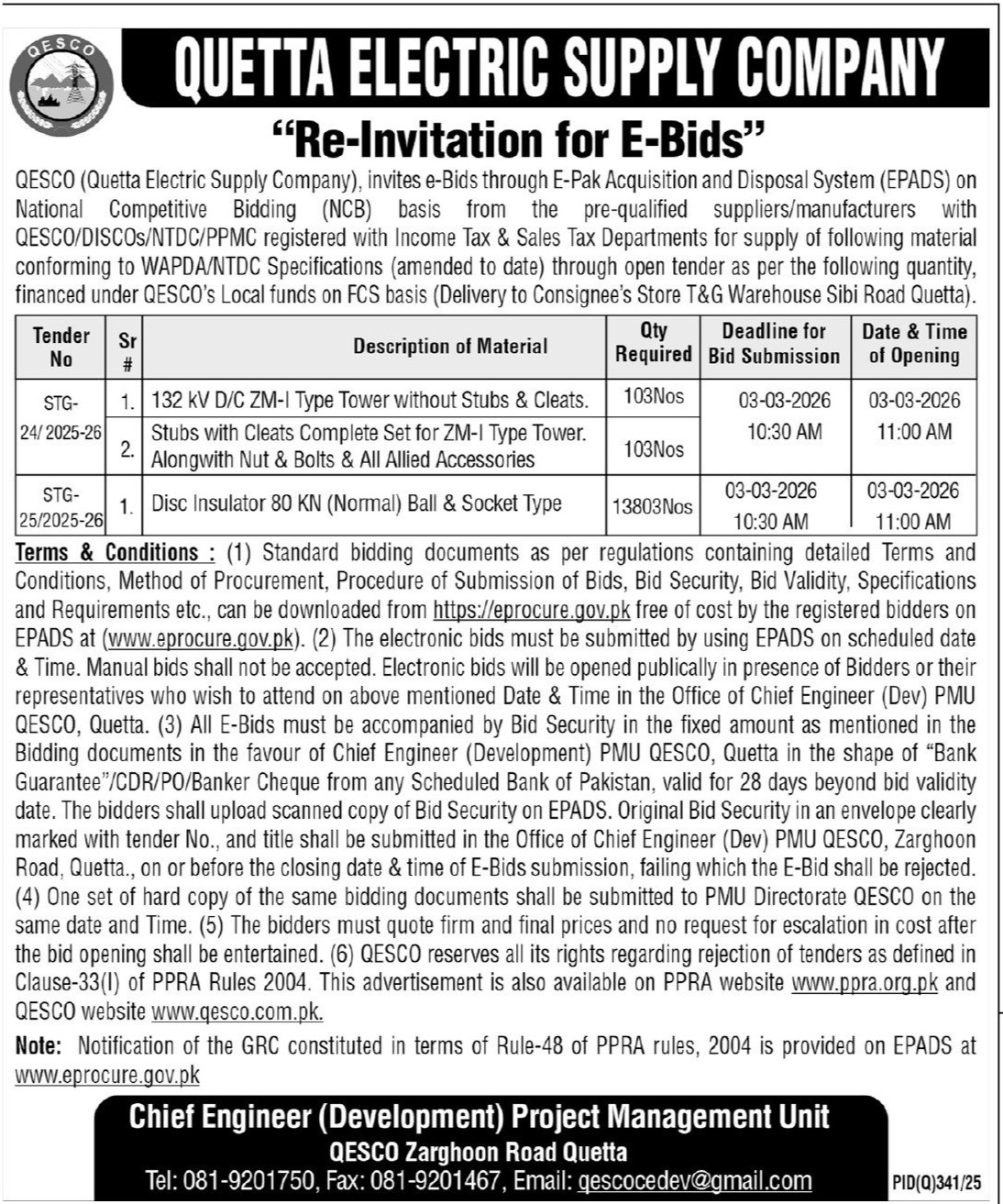 Electrical, Electronics, Energy, General Order Supply, Machinery, Mechanical, Steel, WAPDA