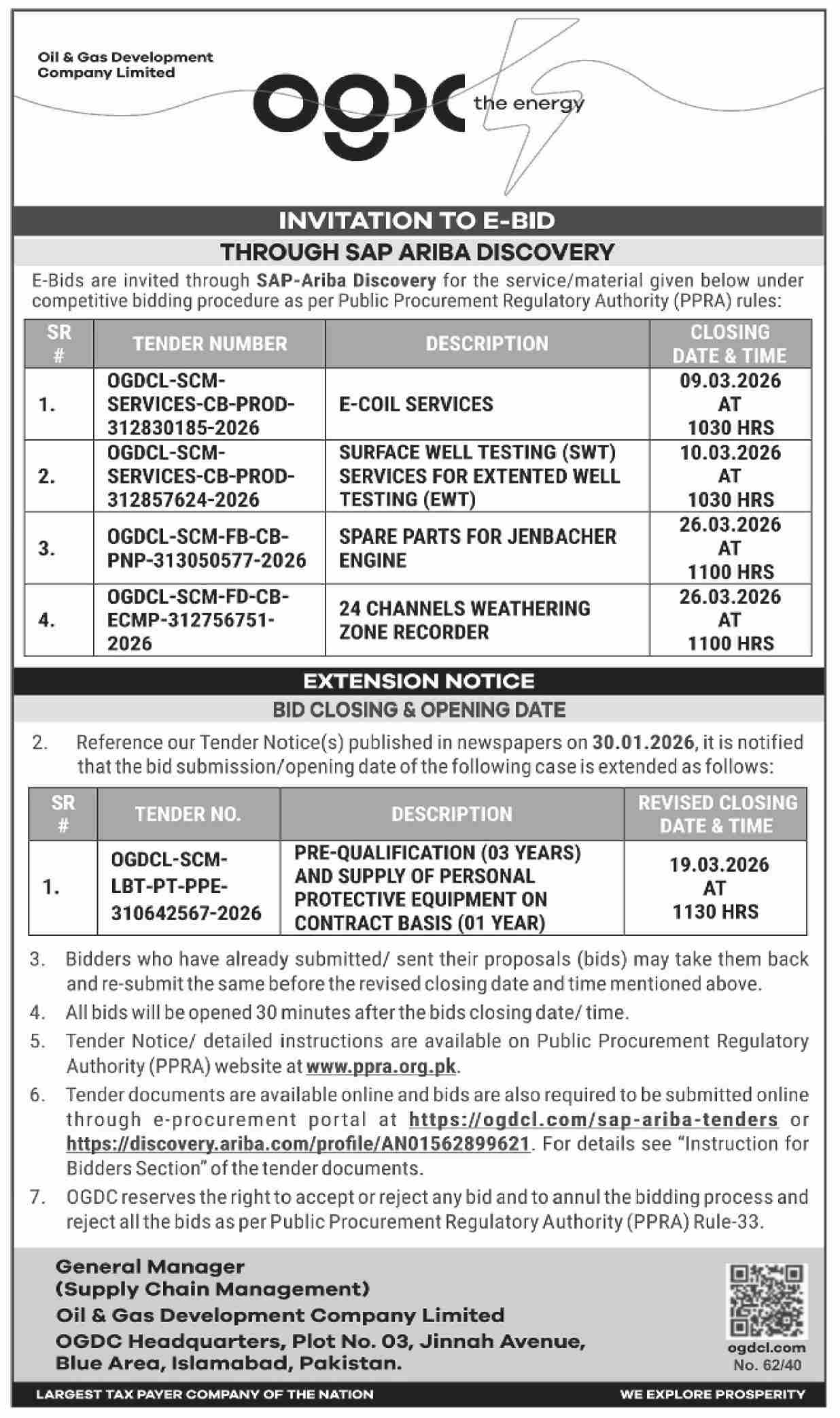 Construction, Electrical, Electronics, Engineering, General Order Supply, Machinery, Mechanical, OGDCL, OGDCL, Pre Qualification, Repair & Maintenance