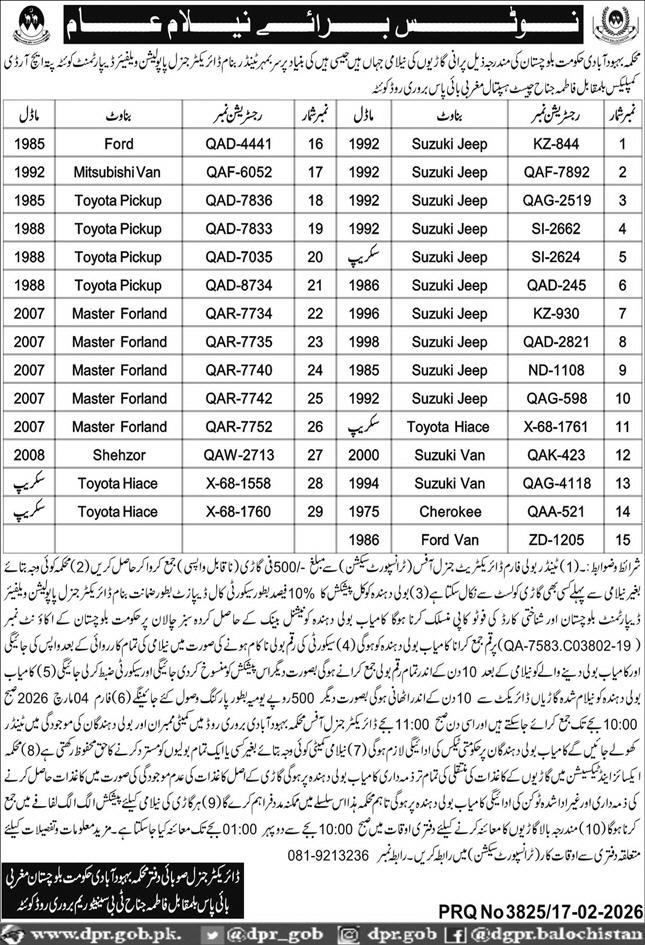 Auction, Baldia, Scrap Material, Toll Tax