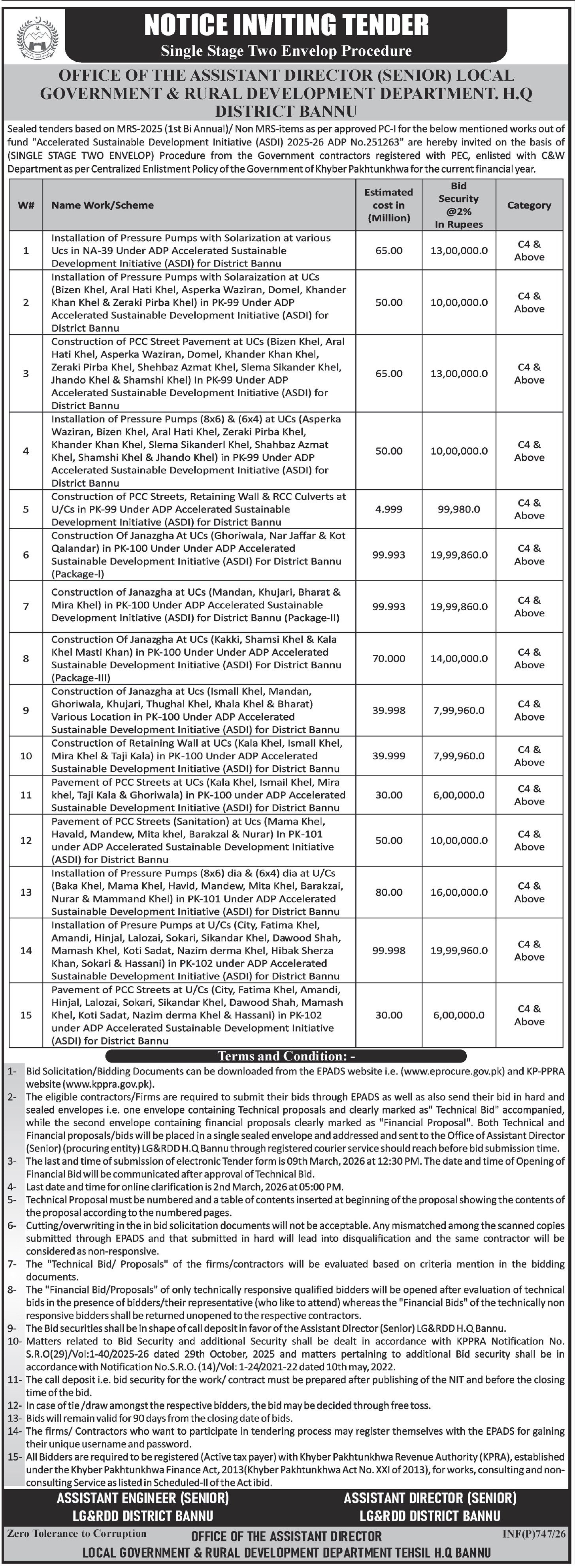Buildings, Construction, Engineering, Repair & Maintenance, Roads, Water Supply Scheme / Drains / Sewerage