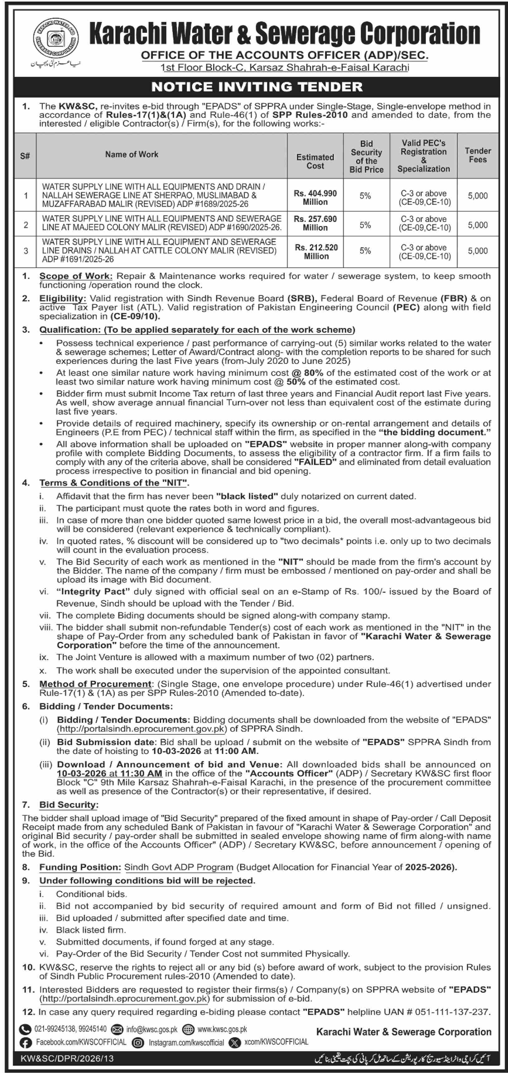 Buildings, Construction, Engineering, Repair & Maintenance, Roads, Water Supply Scheme / Drains / Sewerage