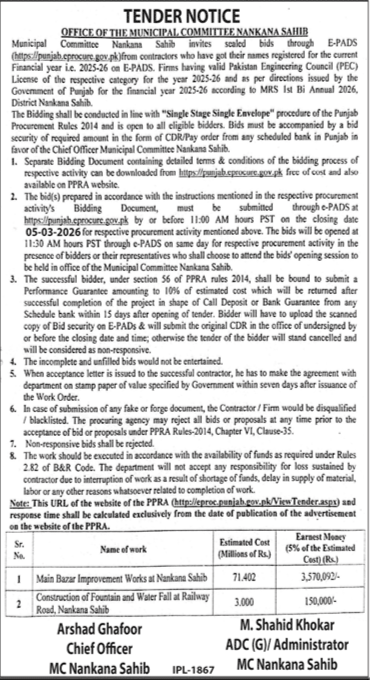 Buildings, Construction, Engineering, Repair & Maintenance, Roads, Water Supply Scheme / Drains / Sewerage