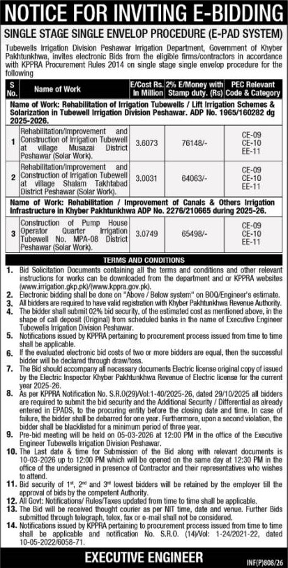 Buildings, Construction, Engineering, Repair & Maintenance, Roads, Water Supply Scheme / Drains / Sewerage