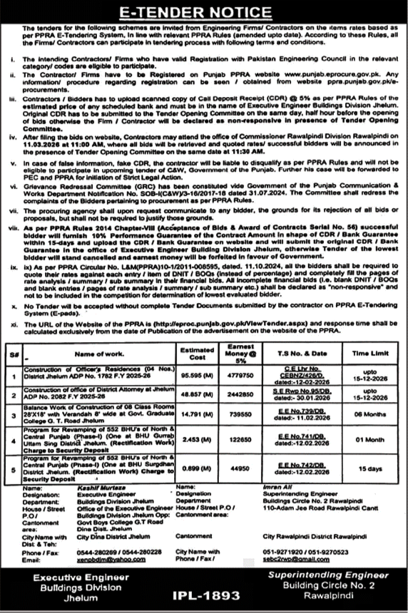 Buildings, Construction, Engineering, Repair & Maintenance, Roads, Water Supply Scheme / Drains / Sewerage