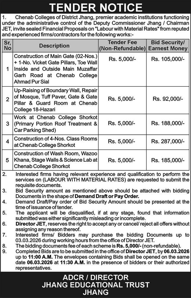Buildings, Construction, Engineering, Repair & Maintenance, Roads, Water Supply Scheme / Drains / Sewerage
