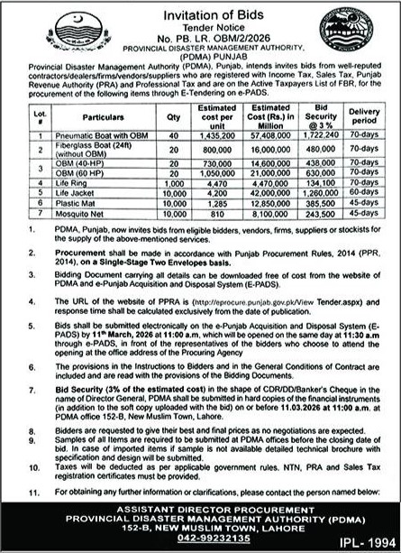 Provincial disaster Management Authority Lahore