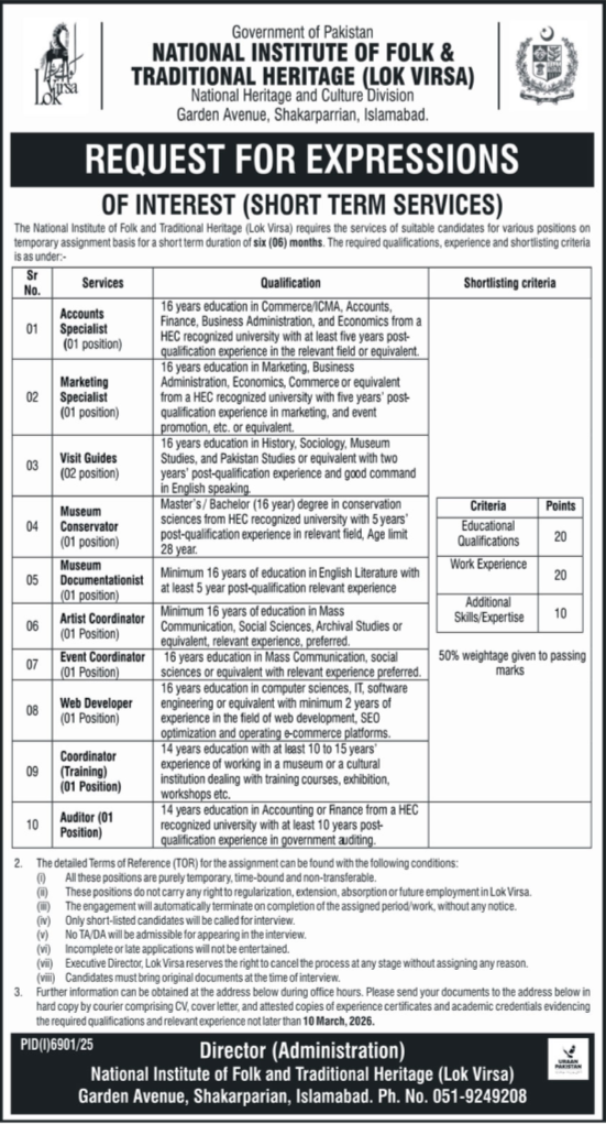 National Institute of Folk and Traditional Heritage, Islamabad