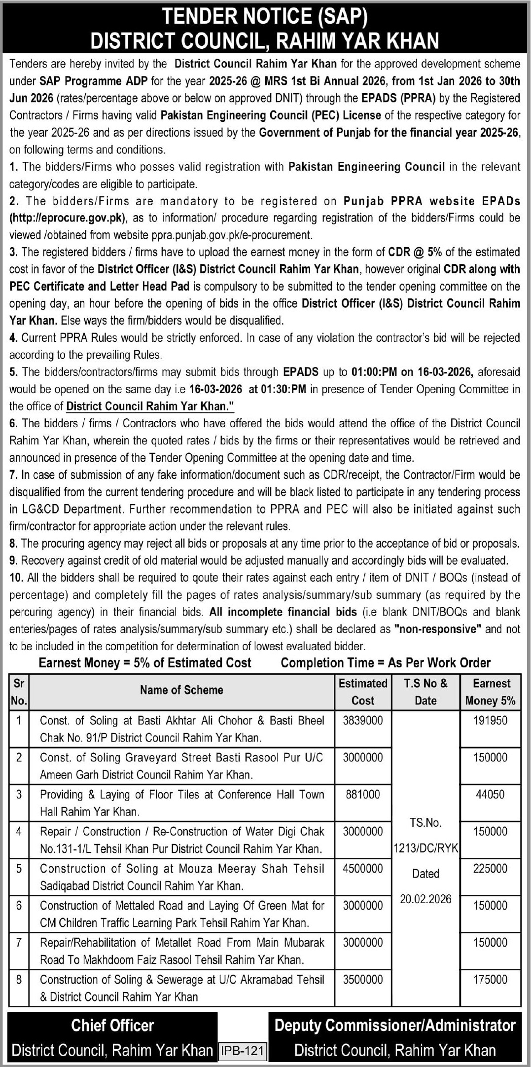 Buildings, Construction, Engineering, Repair & Maintenance, Roads, Streets / Soling, Water Supply Scheme / Drains / Sewerage