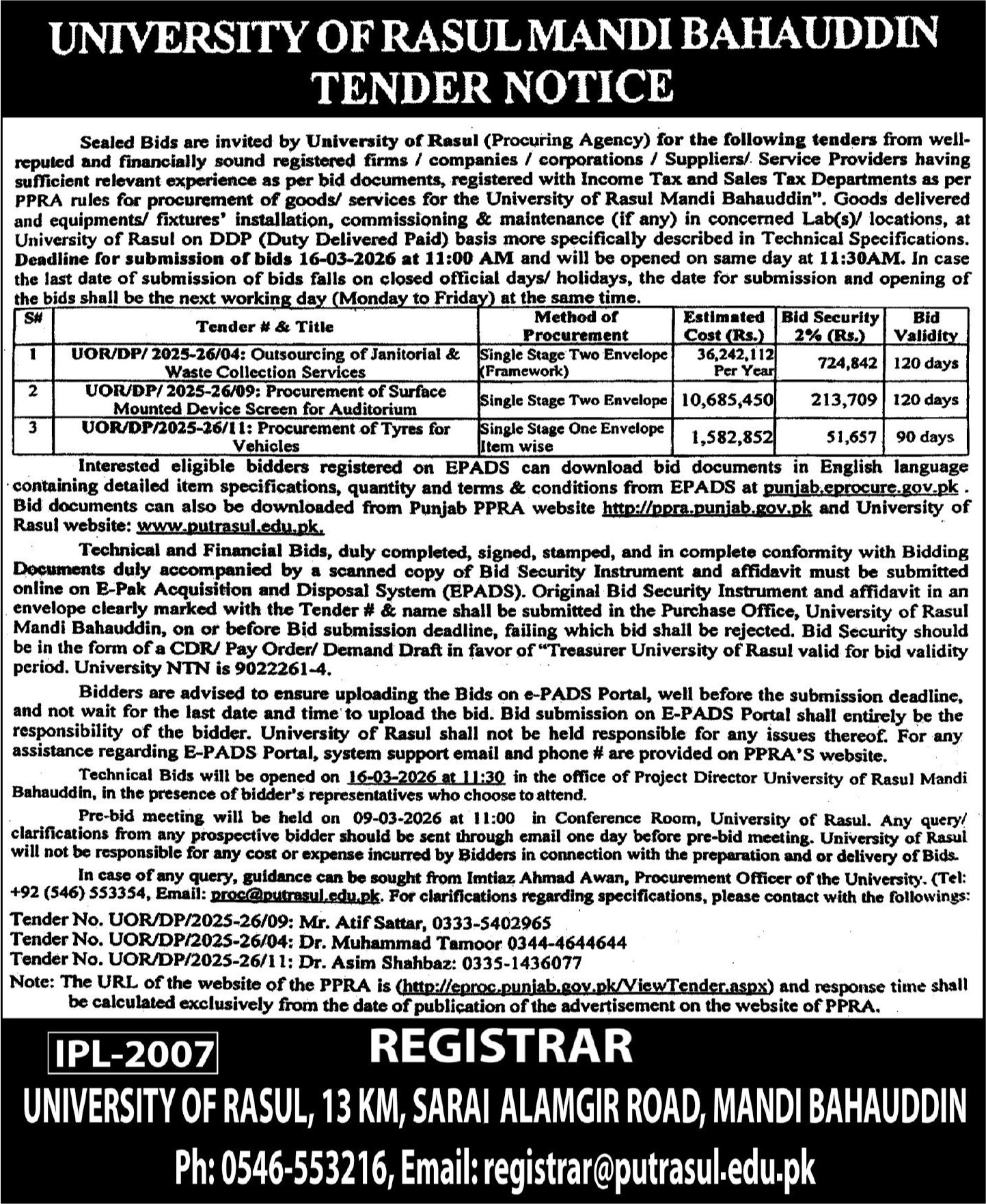 Tender Description