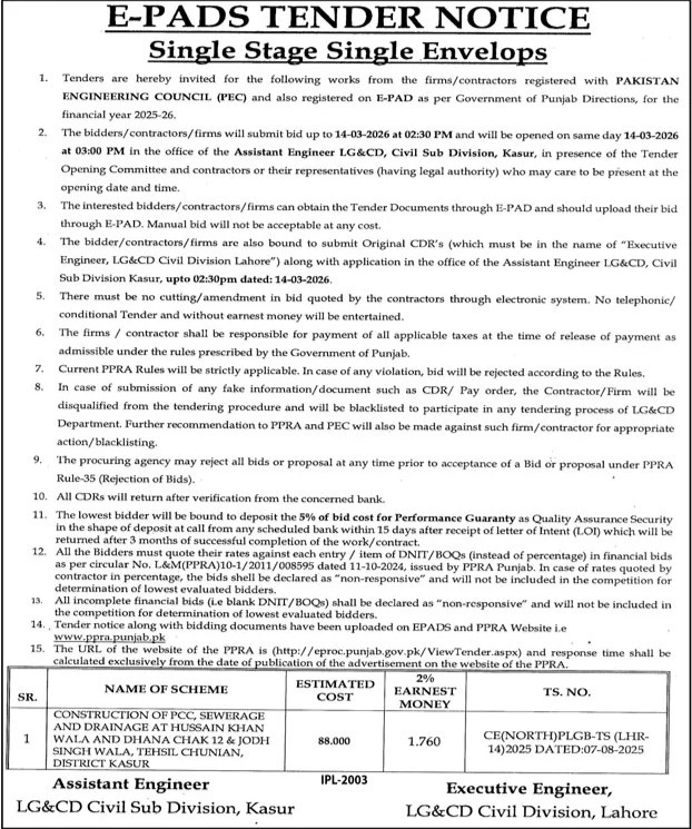 Buildings, Construction, Engineering, Repair & Maintenance, Roads, Water Supply Scheme / Drains / Sewerage