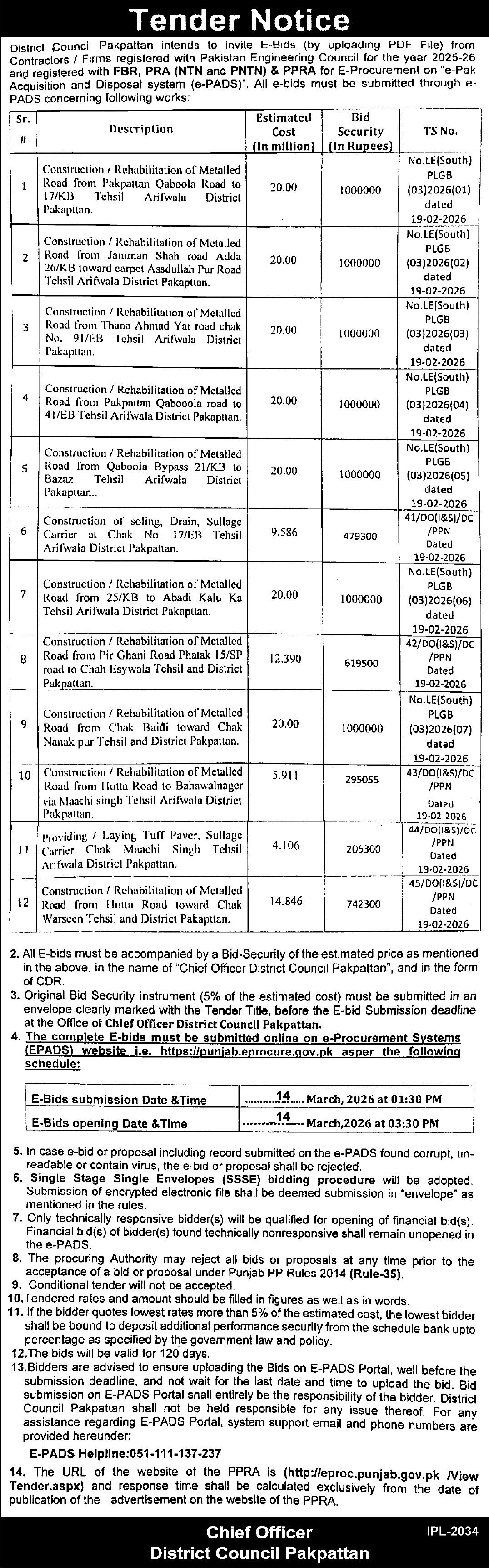 Buildings, Construction, Engineering, Repair & Maintenance, Roads, Water Supply Scheme / Drains / Sewerage