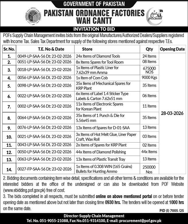 Arms Ammunition, Electrical, Electronics, General Order Supply, Machinery, Mechanical, Plastic