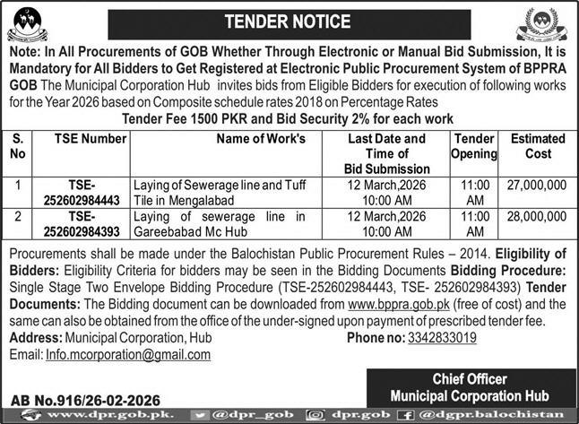 Buildings, Construction, Engineering, Repair & Maintenance, Roads, Tiles/Marbles, Water Supply Scheme / Drains / Sewerage